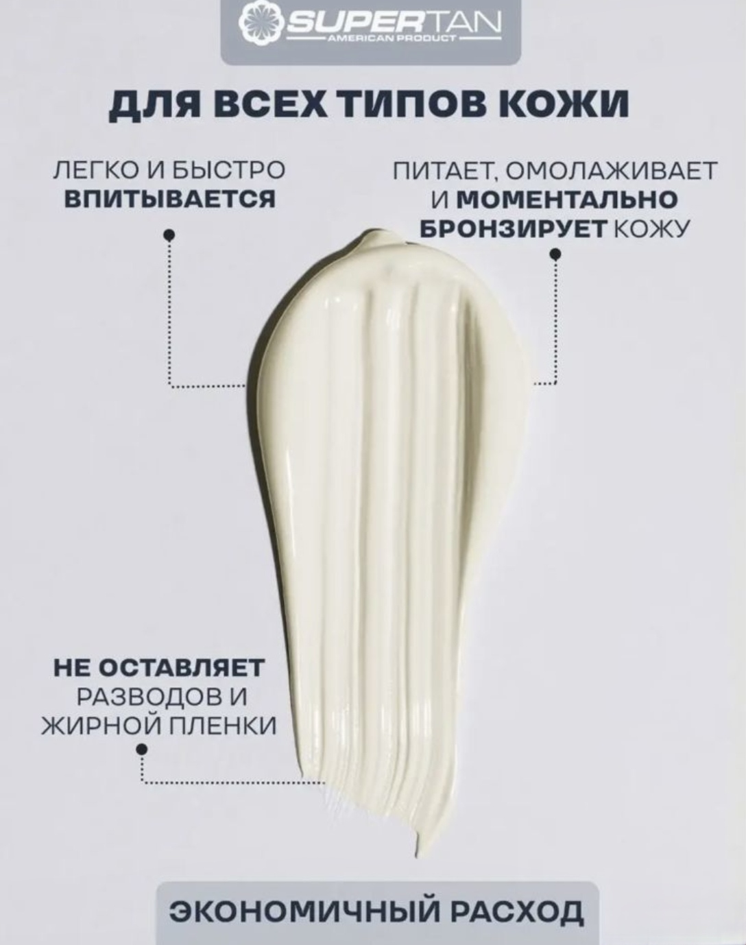 Рекомендован для любого типа кожи. Подходит для загара в солярии и на солнце. С бронзатором.