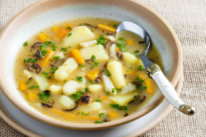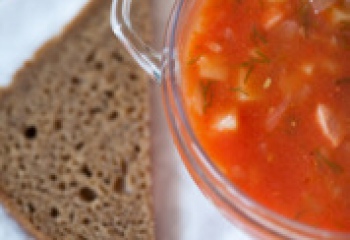 Обед: порция овощного супа (300 г), пара ломтиков ржаного хлеба.