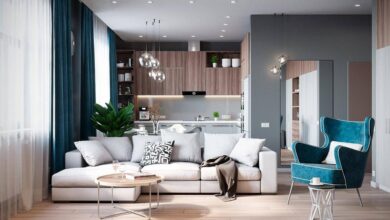 Повелитель этого сезона – зеленоватый. Дайте под его безраздельную власть кухонные стенки и гарнитур, а остальную часть комнаты оформите в размеренных, но нескучных тонах, поддержав общий образ древесной мебелью и гаджет.