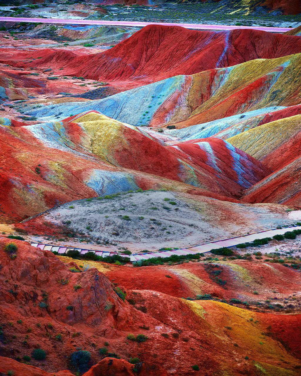 Главная особенность гор Чжанъе Данксиа - это изумительные пейзажи, причудливые формы и насыщенные цвета. Горы известны своими естественными "раскрасками", которые образуются из-за экстравагантной цветовой гаммы природного камня и минералов, составляющих горные породы.