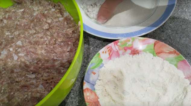 • Руками сформируй из фарша маленькие котлетки и обваляй их в муке.