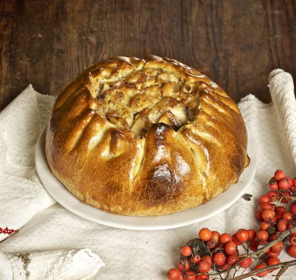 Перед подачей влейте в отверстие пирога 50 мл жаркого бульона.