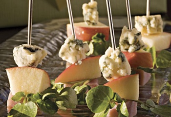 Заблаговременно можно приготовить и уникальный сырный "шашлык". Возьмите зубочистки и нанижите на их кубики (1,5*1,5 см) сыра 2-3 видов. Меж кубиками сыра расположите на зубочистке оливки и маслины без косточек. Зубочистки с "шашлыком" воткните в половинку яблока. Оригинально и стремительно вы разнообразите стол таковой закуской! Приятного аппетита!