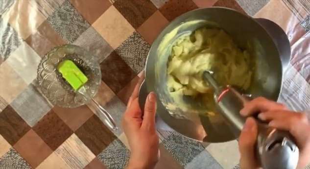 - Во время выпекания эклеров можно приготовить крем. В комфортной емкости смешай творог, жирную сметану и растопленное сливочное масло. Хорошо размешай, а потом всыпь сладкую пудру. Опять размешай всё до однородной массы.