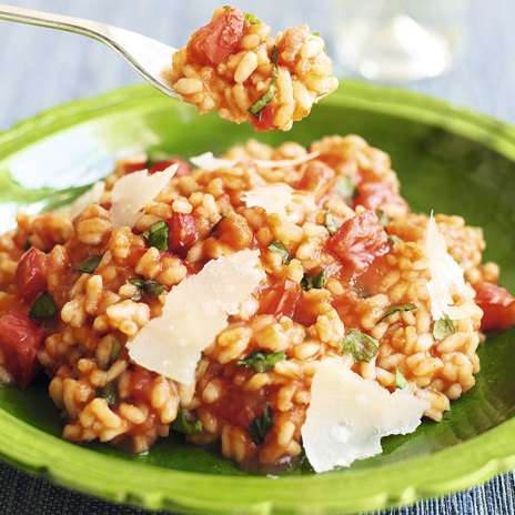 Томаты ошпарьте, снимите кожицу, нарежьте. Добавьте к ризотто за 3–4 минутки до готовности риса.