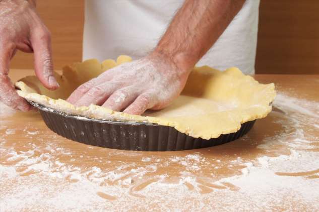 Пошли форму с ее содержимым в разогретую до 180 градусов духовку на 15 минут. Потом убери груз и выпекай базу для пирога еще в течение 10 минут.