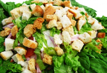 Салат Цезарь – весьма питательный и смачный салат. В базе его рецепта лежит курица и листья салата Ромэн. Соединять салат необходимо перед самой подачей на стол, по другому хлебные гренки размякнут.