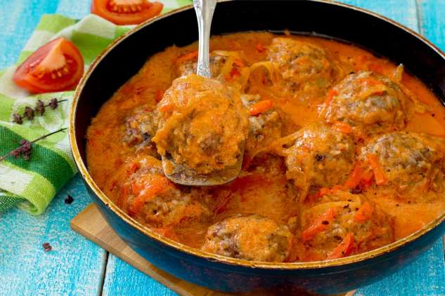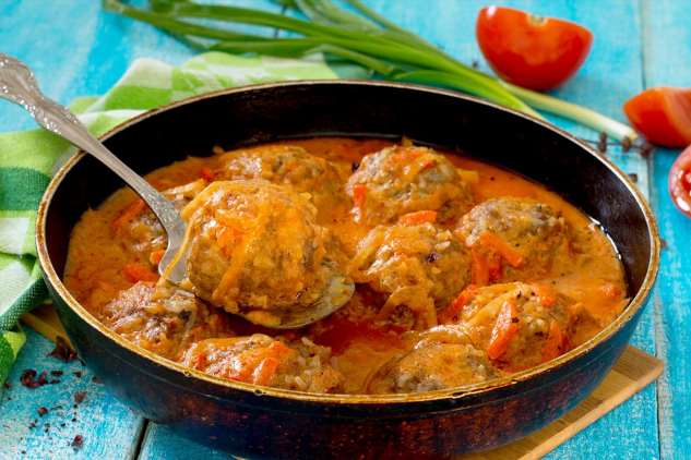 В сковороду с соусом кладем обжаренные котлетки. Накрываем всё крышкой и тушим 25–30 минут на небольшом огне. Смачный, сытный ужин для всей семьи готов!