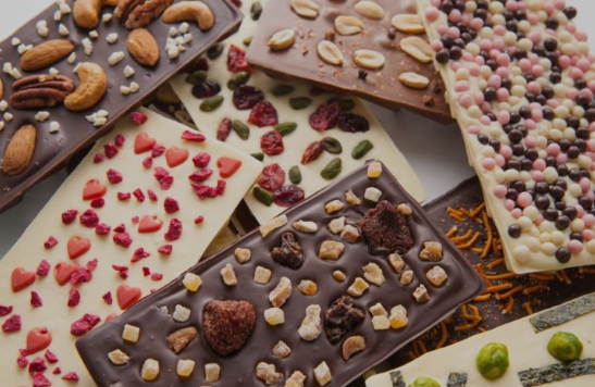 Шоколад бывает как в виде плиток и батончиков, так и в форме конфет, трюфелей и пралине. Он также может содержать различные добавки, включая орехи, фрукты, карамель и пряности, чтобы создать разнообразные вкусы и текстуры.