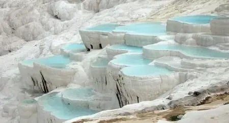 Конечно, Памуккале, прежде всего популярен именно термальными источниками и купальнями. Белоснежные террасы создают уникальные бассейны, где туристы могут погружаться в самые разные температуры - от прохладной до горячей воды.