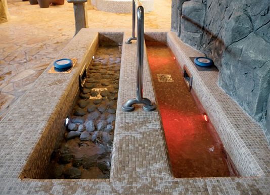 Дорожка Кнейпа - это метод водолечения, который включает в себя закаливающие процедуры с использованием резервуаров, наполненных горячей и холодной водой, расположенных рядом друг с другом.