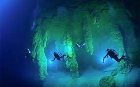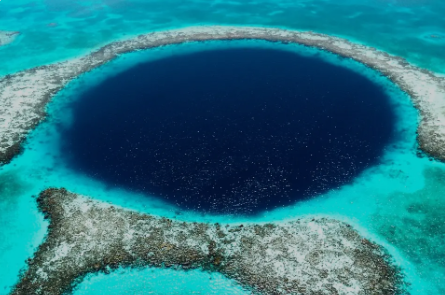 Большая голубая дыра — крупная дыра, расположенная в центре Лайтхаус-Рифа, атолла в составе Белизского барьерного рифа. Внешний вид Большой голубой дыры впечатляет: она имеет округлую форму и диаметр около 300 метров, а ее глубина превышает 120 метров. Впечатляет и открытое водное пространство внутри дыры - это одно из самых крупных подводных камер в мире.