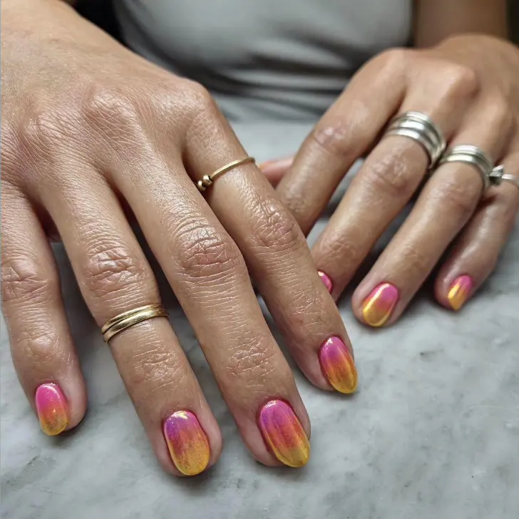 * Разнообразие техник: Хромбре можно выполнять с использованием различных техник нанесения хромированной пудры, создавая различные текстуры и эффекты – от мягкого мерцания до яркого, почти голографического блеска.