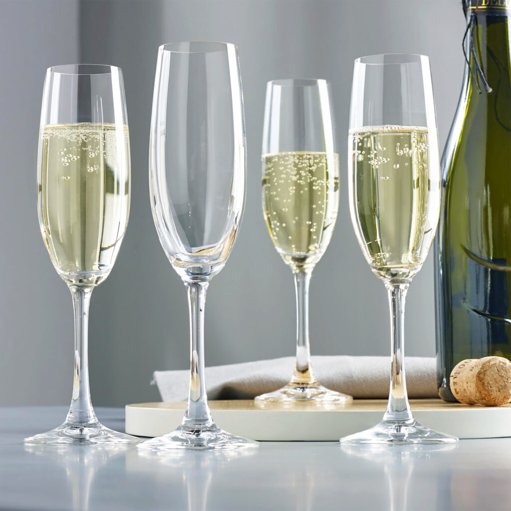 - Стекло: Хорошие стеклянные бокалы также могут отлично выполнить свою функцию. Важно, чтобы они были прозрачными, чтобы вы могли наслаждаться цветом и пузырьками шампанского.