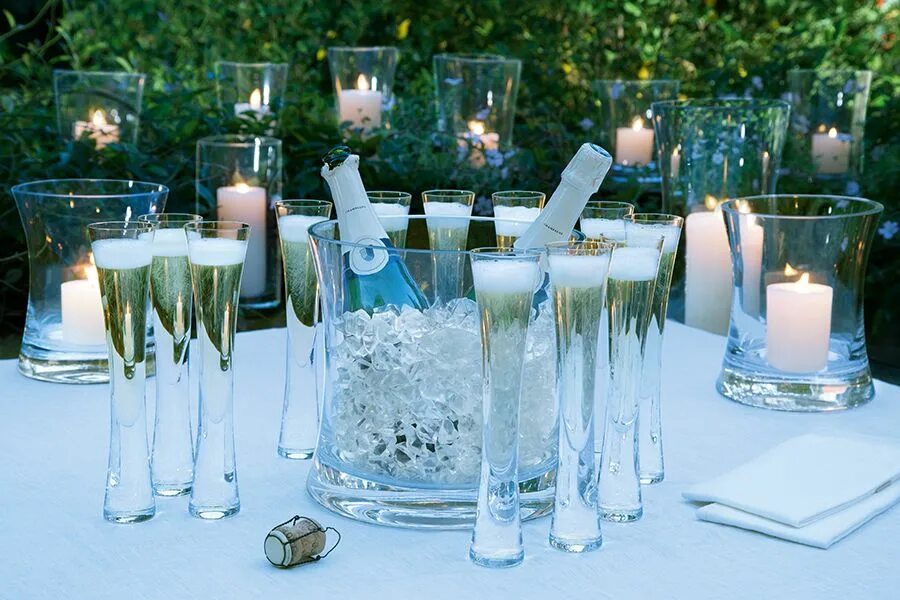 - Бокалы с узким горлышком помогают дольше сохранять холод шампанского. Хорошая идеja — предварительно охладить бокалы, чтобы шампанское не нагревалось слишком быстро после наливания.