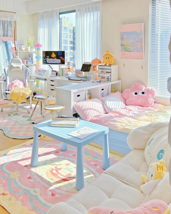 🧸 Яркие цвета и пастельные оттенки: Использование ярких и пастельных цветов в дизайне интерьера также характерно для стиля каваи. Эти цвета создают радостное настроение и делают пространство более уютным и приятным для пребывания.