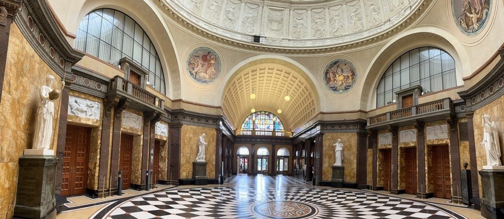 Курхаус славится своей бальными залами. Они являются одними из самых больших и роскошных в Европе. Бальные залы представляют собой настолько изысканный и элегантный интерьер, который полностью погружает вас в атмосферу роскоши и великолепия. Здесь можно оформить свадьбу, провести выставку или просто насладиться атмосферой роскоши на балу.