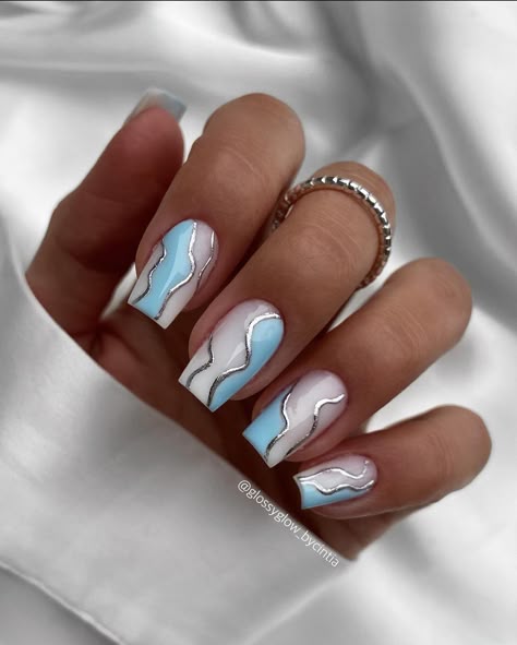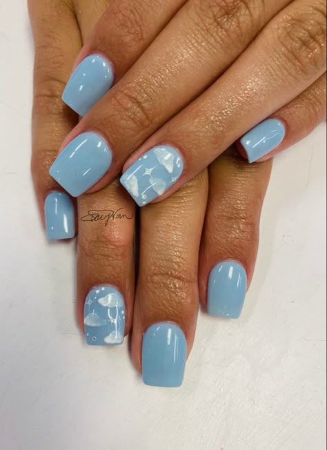 Маникюр в цвете "baby blue" (нежно-голубой) — это отличный выбор для создания свежего и стильного образа. Этот цвет ассоциируется с легкостью, нежностью и спокойствием, что делает его популярным в весенне-летний период.