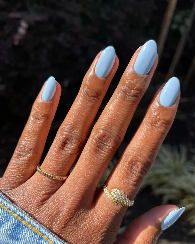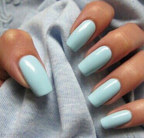 Однотонный маникюр: Просто покрасьте все ногти в нежно-голубой цвет. Это классический и элегантный вариант.