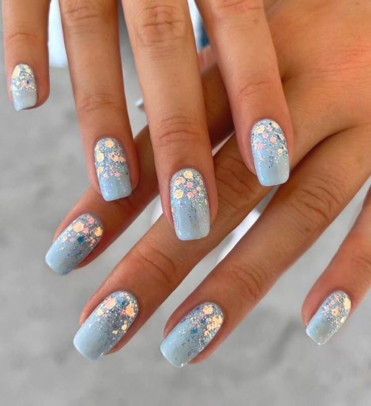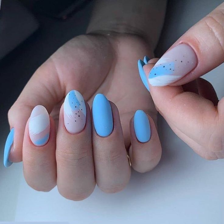 Комбинация с другими цветами: Сочетайте baby blue с пастельными оттенками, такими как розовый или мятный, для создания яркого и игривого маникюра.