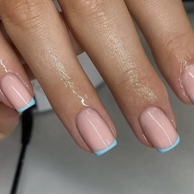 Френч с baby blue: Используйте нежно-голубой цвет вместо традиционного белого для создания френча. Это придаст вашему маникюру современный вид.