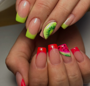 2. Градиентный маникюр: Создайте эффект градиента, используя яркие цвета, начиная с одного оттенка на корне ногтя и постепенно переходя к другому оттенку на кончике.