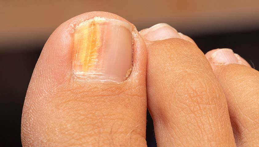 * Появление полосок или пятен: На ногте могут появиться белые, желтые или коричневые полоски или пятна.