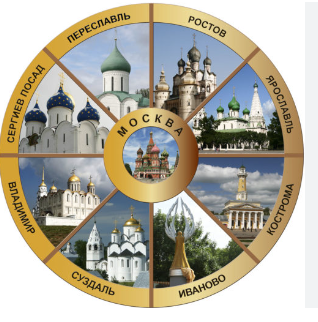 Золотое Кольцо включает такие города, как Сергиев Посад, Переславль-Залесский, Ростов Великий, Ярославль, Кострома, Владимир, Иваново и Суздаль. Каждый из этих городов является живым историческим музеем, сохранившим свою средневековую архитектуру, крепости, монастыри, церкви и другие памятники древности.
