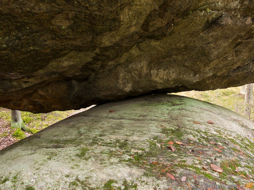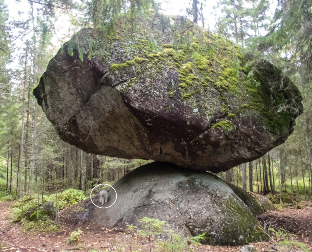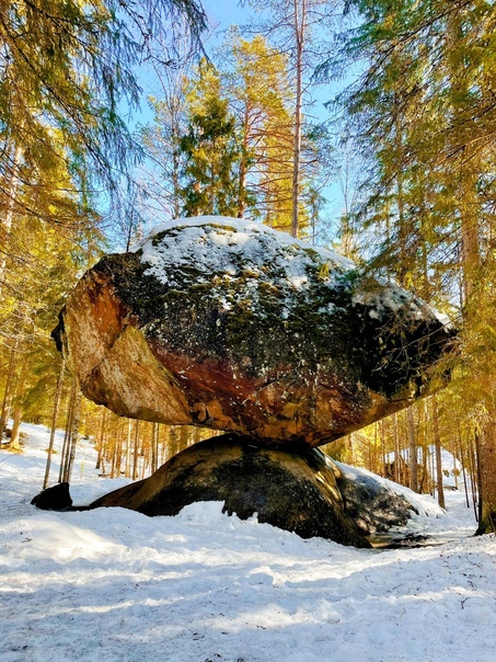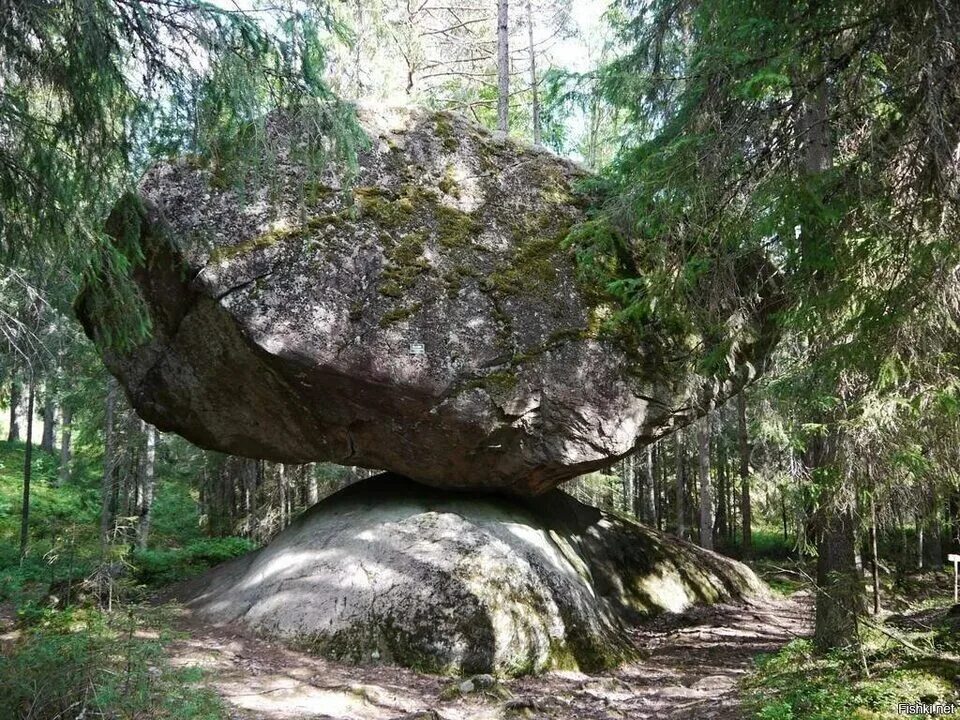 В глухих дебрях на юго-востоке Финляндии есть удивительное и в чем-то даже мистическое место. На огромном, вросшем в землю валуне покоится не менее крупный гранитный камень, причем площадь их соприкосновения столь мала, а угол наклона верхнего камня таков, что кажется, еще чуть-чуть и верхний скатится с нижнего. Но он не скатывается, а как будто балансирует на краю пропасти. И даже если его подтолкнуть, не сдвинется с места.