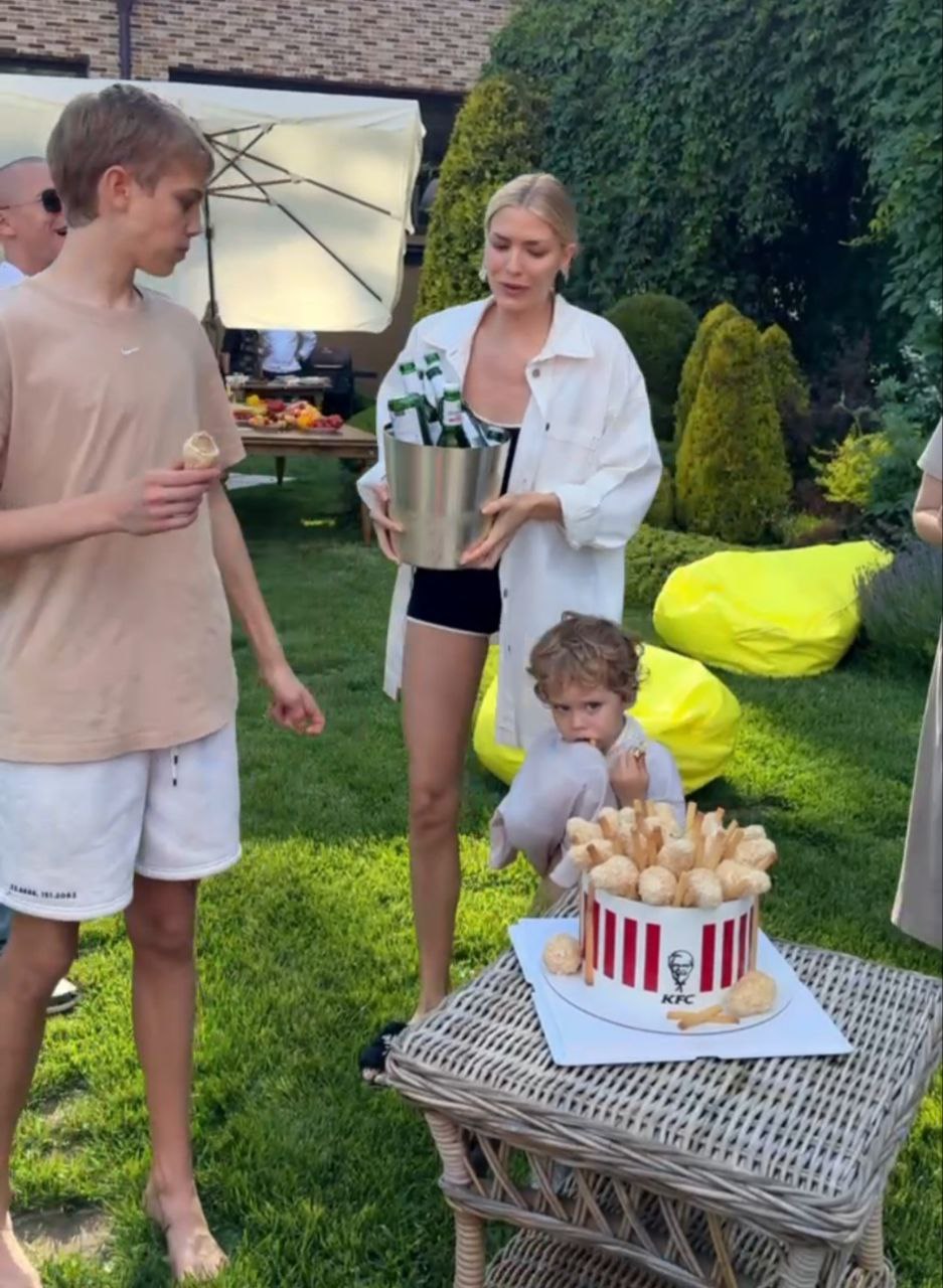 "Тетя Лена", как называют ее друзья сына, позаботилась о том, чтобы на вечеринке было все, что нужно для отличного настроения. В меню были не только традиционные угощения, но и безалкогольное пиво, которое, по всей видимости, стало хитом вечера.